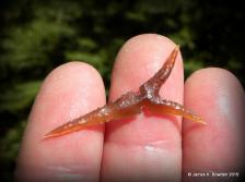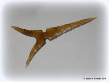 This waxy, translucent, root beer colored stone is amazingly beautiful!  I also love Knife River Flint, because it holds up to delicate edge work and extreme thinning of the piece.  In fact, this arrowhead averages just 1/16 inch thick (with 3/32 inch at its thickest part).  There is only 1/8 inch between the notches!