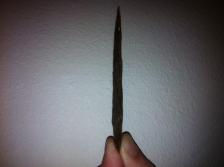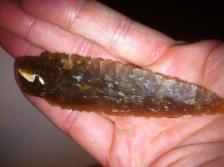 Here's a nice scotts bluff I made over my winter break from school. The edges are very thin and sharp and comes to a nice point at tip. Flake pattern is correct for type. At the base there is a seem that is filled with chalky material, makes for an interesting addition to the point. |