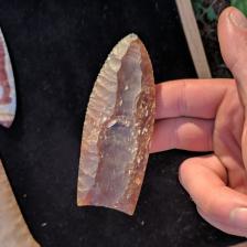 Here's a nice little Clovis from the always beautiful knife river Flint. The first percussion flute ran about 1/3 of the way and the second ran clear to the tip, it was unintentional but kinda neat