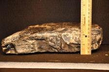 This is a large chunk of Dirty Rainbow from Glass Buttes Oregon. If your not familiar with Dirty Rainbow, It is a material predominantly made up of a greyish silver sheen with color bars dispersed throughout. Many people have refered to it as the velvet of Glass Buttes and much higher quality than other obsidians out there. Unfortunately, the camera just can't capture the true beauty of this material. This piece is rather large at 10" x 5 1/2" x 2 1/4" and approx. 10 lbs. |