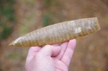 Don't let this one get away, this should probably be a 150.00 piece. This is a fantastic Flint River blade knapped by Brian Cofield, beautiful parallel flaking, precision edgework, thin, long and well made. It was the centerpiece of a frame for me. Shipping is Free |