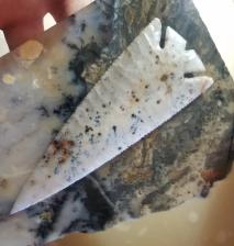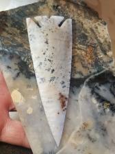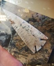 Here is a really nice elko point made from polka dot agate which displays great flake patterns, super thin serrated edges and deep notches. Thanks for viewing.                       |