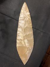 This Laurel Leaf is made from a great piece of Pedernales. Colors are brown and cream. Bold flaking. 7mm at the thickest spot.