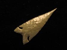 This cute little Wintu point is made out of a piece of Burns Green Oregon obsidian. Needle tip, key hole notches and fine serrations. Its fairly small but is more of the actual size most Wintu points really were. Some of them were quite small and dainty actually. Still tricky buggars to make at times though.... |
