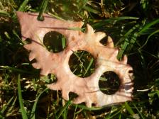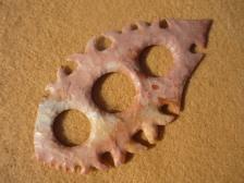 A nice Mayan Eccentric made from pink, gray, and tan Burlington. Knapped by master flint knapper, Bob Thomas. Knapped Sept, 2012. |