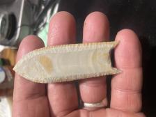 This is a pretty thin Folsom, , 3 mm and thinner, this rock is from SoCal, not an accessible quarry at this time. |