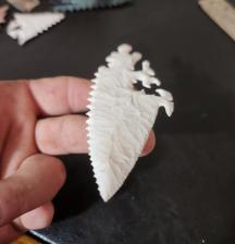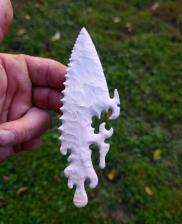 Percussion biface detailed to seem as though its melting. Very unique one of a kind art. This a keeper case piece. I typically dont sell these creations so this is a unique opportunity. |