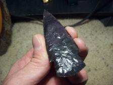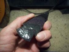 I Knapped this hardin style point out of some Decent Rainbow Obsidian from Mexico.Vivid colers and beautiful point.Thanks for your interest and have a good day.Will combine shipping. |