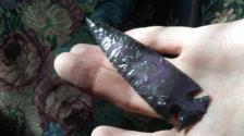 Heres some taim mexican purple sheen obsidian. Has a softspot and some ash but didnt efect the blade. Thanks and have a good day. |