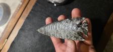 Keokuk blade. Handle is antler with Fordite end cap. |