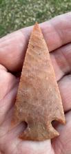 Interesting that the thin white ridge along the curve of the blade is raised, and the flake scars managed to pass over without altering the the pattern or scars path. |