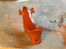 This is a nice little pop-eyed birdstone. Some call it a saddleback too. It has a slight ridge running down the back to the tail and has the traditional holes bored through the feet.