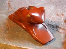 My third frog effigy pipe and probably my favorite. The way his toes wrap around the platform make it look like he really has a grip on it.
