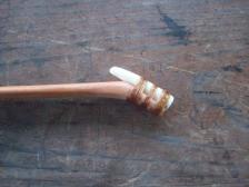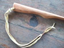 made from solid clear cherrywood, this is a modern version of the iconic 9000 year old atlatl found in Nevada. it features a highly polished and shaped boatstone weight and a whitetail antler spur, both of which are secured on with deer sinew. a deerhide wrist thong ensures that this beauty wont end up in the dirt. light, balanced, and powerful this attractive thrower is a top performer. add three six foot darts for an additional $50. |
