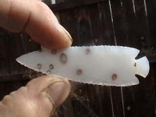 Hi,this is a very nice pt.,with dots,very unique,very thin,excellent pt.,and is 3 1/16 x 15/16 wide,has a small flaw line,no major effect on pt.,...thank you ! |