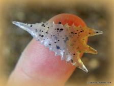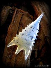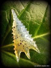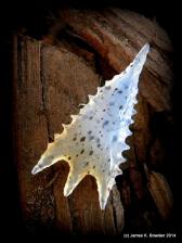 Here's another beautifully delicate gem point with those fine serrations and needle like tip.  This piece has the characteristic black "dalmatian dots" suspended in the Montana Agate with a subtle color in the base.  A true gem!