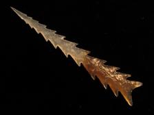 This Hohokam point is made out of clear and golden brown Montana agate. Its of a type not as commonly seen but are present in this type of point from the Snake Town site. Tricky to make without breaking....as always. |