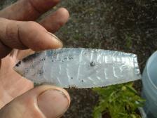 Hi ! Here is a very nice,VERY thin pt. from some montana agate,3 3/4 x 1 1/8 wide.,very good pt. thanx kindly ! |
