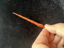 This extra long dagger style point is made out of colorful red/orange Morrison formation chert from southern Utah. The blade portion is quite narrow. Similar style dagger points were found on the upper west coast although I doubt any of the originals were quite like this. |