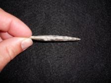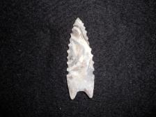 Awesome dalton point made of Mozarkite chert from Missouri. This point has a beautiful bulls eye on one face and crazy mottling on the other. A very colorful point. |