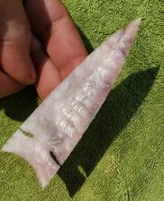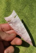 Super narrow entries on the notches really sets this point apart. Made from polka-dot agate the concave base and serrated edges gives this bad boy lots of appeal. Thanks for viewing |