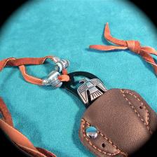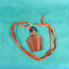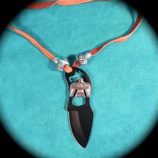 This is a cool neck knife that is lightweight & easily concealed under your shirt. This is a production “Mil-Tec” knife of stainless steel - coated in black, & comes with a leatherette sheath. I’ve customized the knife with a silver-finish Thunderbird & have added a soft leather neck lanyard & beads. This thing is sharp & usable – by the way! A functional knife as well as a piece of jewelry. The knife is 3 ½” long. (Please add $6.00 for shipping & insurance to anywhere in the U.S.). |