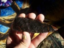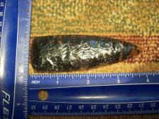 I Knapped this knife blade out of some of my Favorite Sheen Obsidian with awesome stitch like patterns with purple sheen,Much better in hand.Awsome material. Thanks for your interest and have a good day. Will combine shipping. |