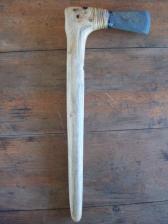 made in the Danish style, this axe features a ground slate blade set in a polished persimmon handle with PPG, rawhide, and hide glue. |