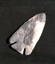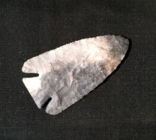 Lightly heated (still dull not glossy) Nethers Flintridge Cream,Greys,White,Tan and some Rosey Pink with quartz inclusions running through the point. Point is beveled with a very nice twist slightly serrated razor sharp and the base is ground. Really nice Lost Lake. |