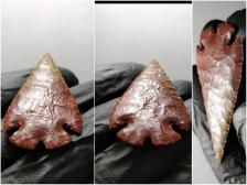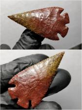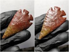 Super nice Montell in a killer piece of two color Petrified Palm Wood. Great form, flaking and balance, with a smooth and regular surface. Love the colors, color shift and preservation visible in the wood. If I'm not mistaken, those spots preserved in the point are called vascular bundles. In any case, it's awesome. I always enjoy making Montells.
