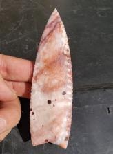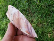 Here is a beautiful Clovis made from polka dot agate. Known as the mastodon killers from 1000s of years ago! Thanks for viewing. |
