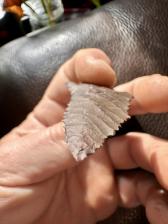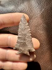 A stellar random serrated rainy buttes Decatur . I took burin flakes (fracture base as some say) from ears, base, and stem. Not symmetrical at all but looks like an ancients go to tool |