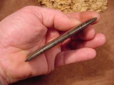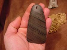 Offered here is a Gorget I made from rare Ohio red banded slate, I drilled a single hole at top. I signed it BC and numbered on top. 4"
