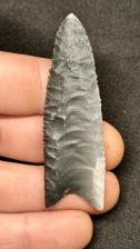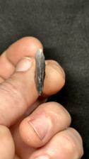 A sliver of white contrasting against this deep black novaculite Clovis really pops in contrast. I love the profile of this Clovis. It’s sharp and sleek! Has a pink translucent tip. I’m pretty happy with both flutes. It’s SCREAMING to be hafted and thrown at some megafauna. |