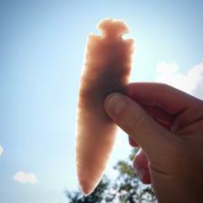 Here we have a very well made, purple Novaculite Dove tail. This was percussion flaked with a solid copper bar if I remember right. I made this a couple years ago. Clean work on both sides