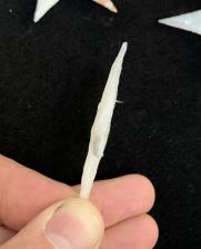 1 of 13 stars featured in Derek McLean’s flintknapping calendar, July 2020. This one is made from whitish clear novaculite with one black tip. |