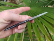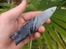 A nice flaked novaculite clovis with nice flutes.