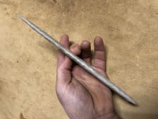 A large dagger chipped from patterned white novaculite with antler percusion and copper pressure. some really good parallel oblique flaking. |