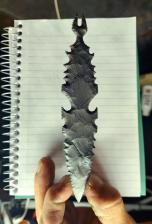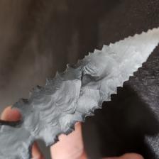 This one was fun creative piece. Percussion knapped from a spall of black and white novaculite. Love the percussion scars on this one. There is a natural crack on one side that showed up towards the final percussion flaking. Ive incuded a close up of the crack. Just be gentle!