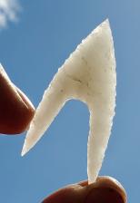 It was a challenging point for flintknappers to flake with the long "ears", but was probably very effective due to its technique of mounting it to an arrow. The arrowhead would fit in a shallow groove in the shaft so that the inside of the base fit snuggly against the wood, thus giving the point added strength.