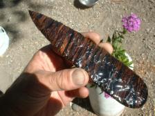 Hi,I just finished this beautiful thang,shows nice bands with a bit of clear/see through.VERY good quality blade,thin & sharp with light serrations, 7 1/2 X 1 7/8 wide,very nice piece ! thanx kindly ! |
