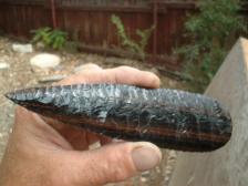 Hi,I made this one from a different rock,shows straight stripes,6 5/8 x 1 3/4 wide,good quality,not perfect,very sharp. >>> I would sell all 3 of these blades for 130$ if interested,K,thanx again ! |