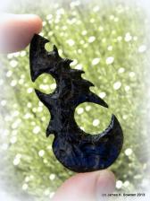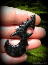The Mayans are well known for their elaborate eccentrics.  I have flintknapped this one with a Mayan flair to it, but still holding true to my personal style.  Notice that this artistically chipped piece has my initials next to two dates.  The earlier date is when I made the biface, and the later date represents the day I knapped the eccentric from the original biface ... a difference of 3 years!