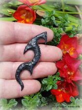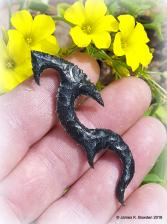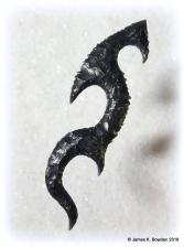 The Mayans are well known for the eccentrics that they flintknapped, but today, few flintknappers create these artistic pieces.  I have knapped this exquisite piece from obsidian in the tradition of the old Mayan work , but I have added my own style to this lithic art.  As with all of my stone work, it has been signed and dated using a diamond tipped scribe.