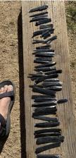 Obsidian blades, enough for two swords, some are 6” long but have cortex , bulbs of force, and a curve so they will need to be snapped to correct lengths. |