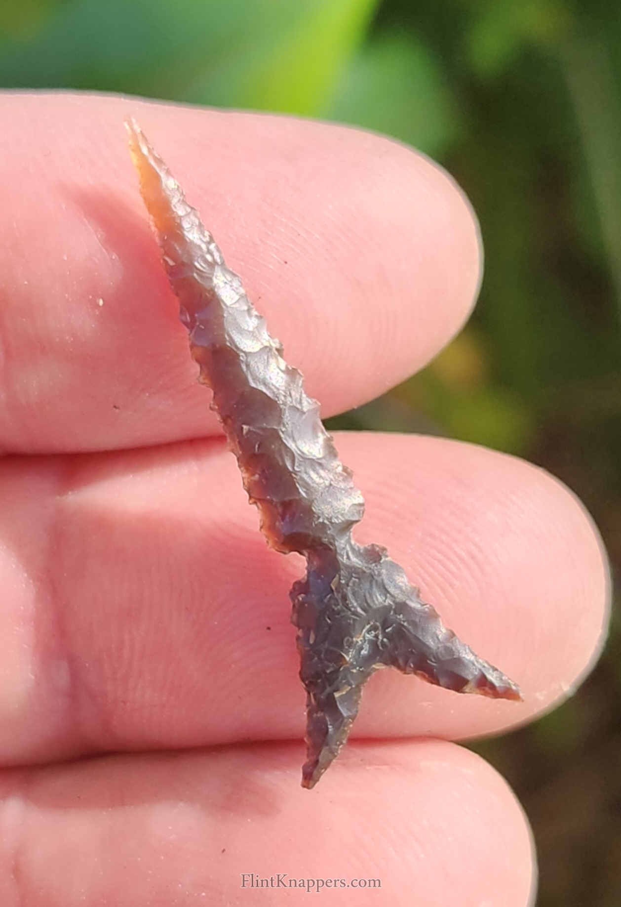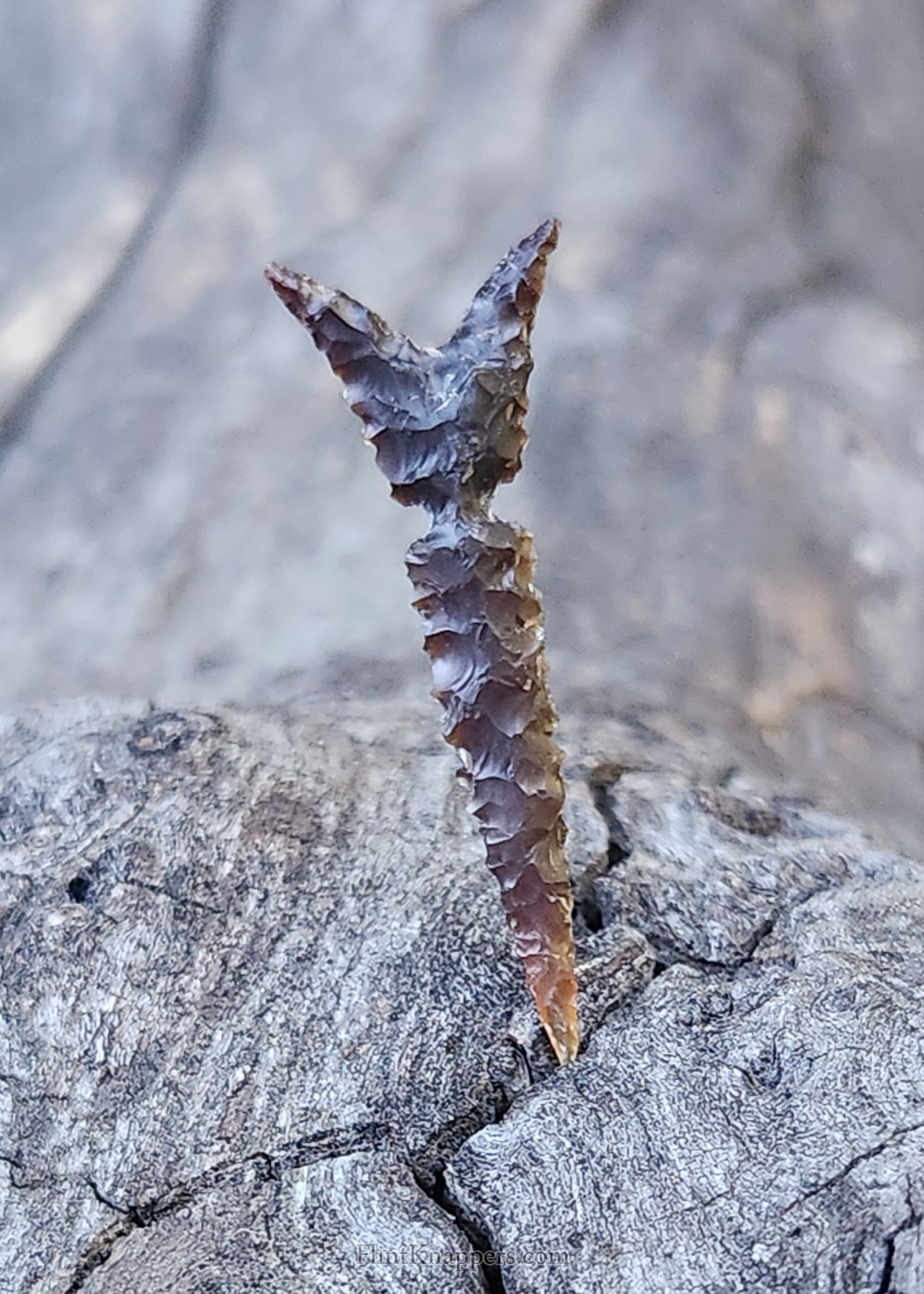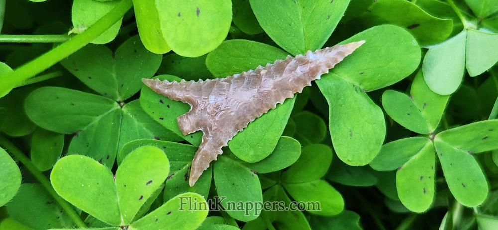 I love creating eccentrics, because every one is a surprise to me. I do not preplan the design, it just unfolds as I flake it. I'm very pleased with how this piece turned out. It seems to flow well. I hope to that you will enjoy it as a piece of lithic art.