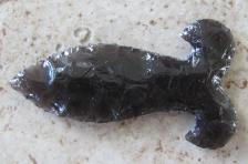 This is a very cool simpson mustache point made of translucent black obsidian. |