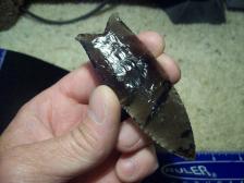 I Knapped this paleo style point out of some Ribon Obsidian with a little purple,bluish sheen in it,Not real strong but its there, better in hand. Thanks for looking and have a good day. Will combine shipping. |