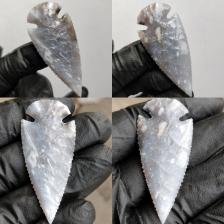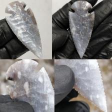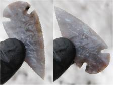 Killer Oceanwave Agate Corner Notch. Super smooth, regular, well balanced, and very cleanly flaked. In another great piece of oceanwave, with awesome colors and feautures, as well as a VERY glossy luster, and highly translucent. I tried to get some real closeup shots of the material, but keep in mind it's even better looking in person. Pictures dont do this material justice.
