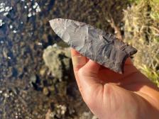 Clovis point knapped from Wyoming oil chert, using antler and stone tools(abo knapped) |